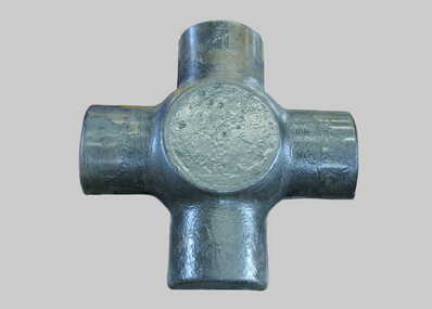 十字軸是傳動(dòng)軸上的關(guān)鍵部件,與叉頭配合使用,該十字軸材質(zhì)30Cr2Ni4,重1413kg。采用開(kāi)式模鍛成型。相比自由鍛成型的大型十字軸,采用模鍛成型大大提高了材料利用率,降低了機(jī)加工工時(shí),節(jié)約了成本。本公司可完成各種型號(hào)十字軸的模鍛成型。
