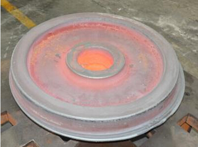 該齒輪坯模鍛件采用閉式模鍛鍛造成形,材質(zhì)18CrNiMo7-6,外徑φ1180mm,重2055kg。對(duì)于此類(lèi)大型齒輪坯而言,模鍛成型相比傳統(tǒng)成型方式(如自由鍛,胎膜鍛等),具有更高的生產(chǎn)效率、更高的材料利用率和更好的力學(xué)性能。本公司可以完成各種尺寸的齒輪坯的模鍛成型。
