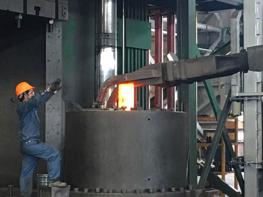 模鍛崗位員工正在指揮取料機將鍛件準(zhǔn)確投放進(jìn)模具