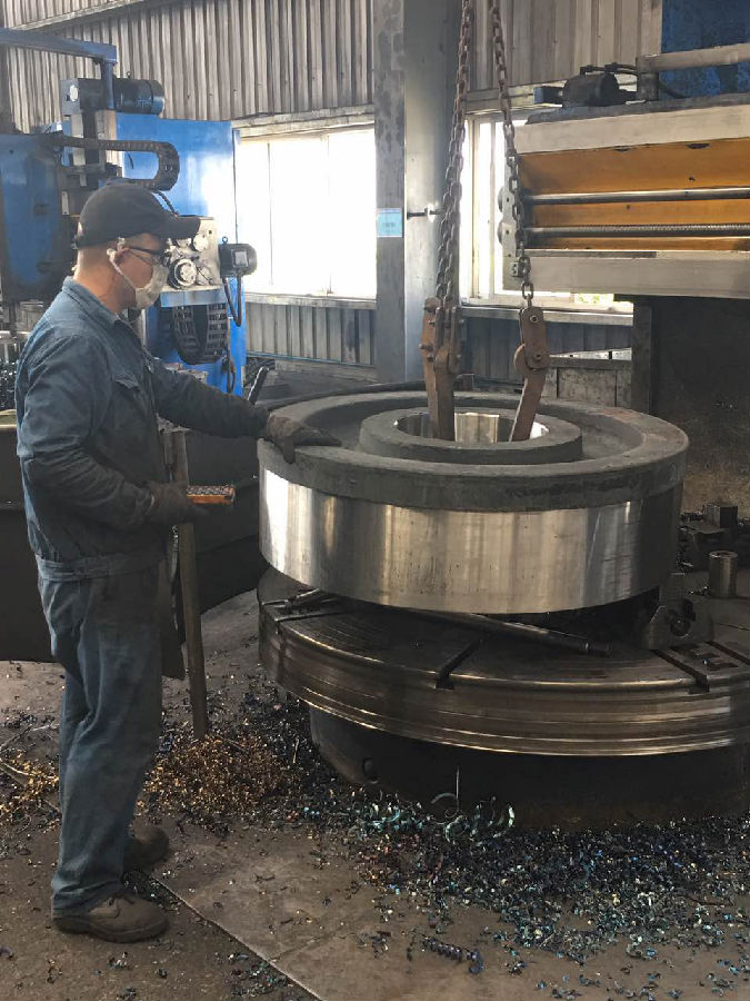 機加工員工正在調(diào)運待加工的齒輪坯
