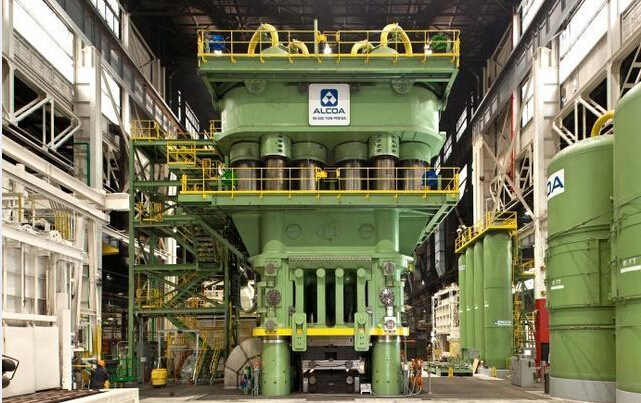 美國(guó)鋁業(yè)位于俄亥俄州克利夫蘭工廠的45000噸模鍛水壓機(jī)。1955年由梅斯塔(MESTA)公司制造。